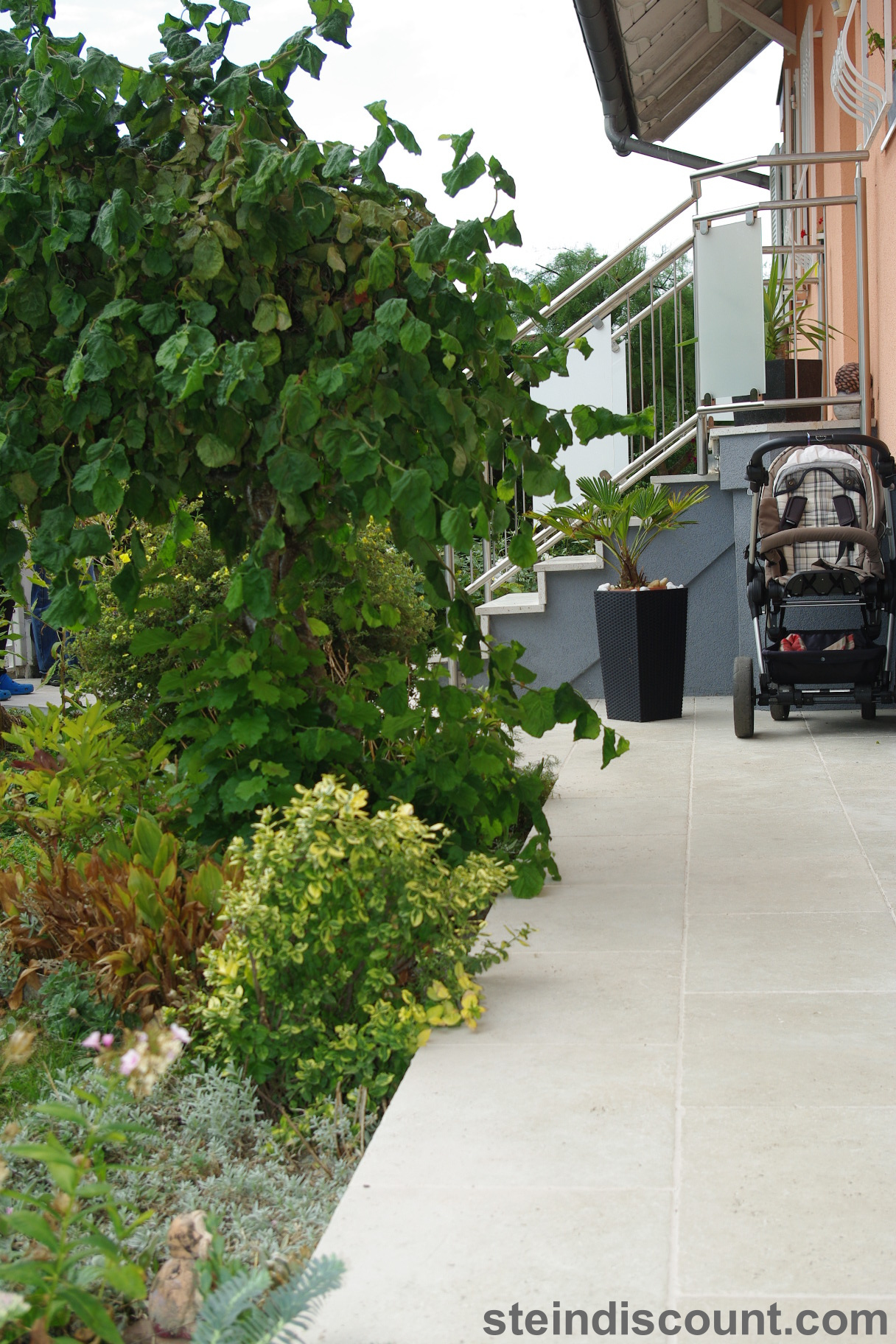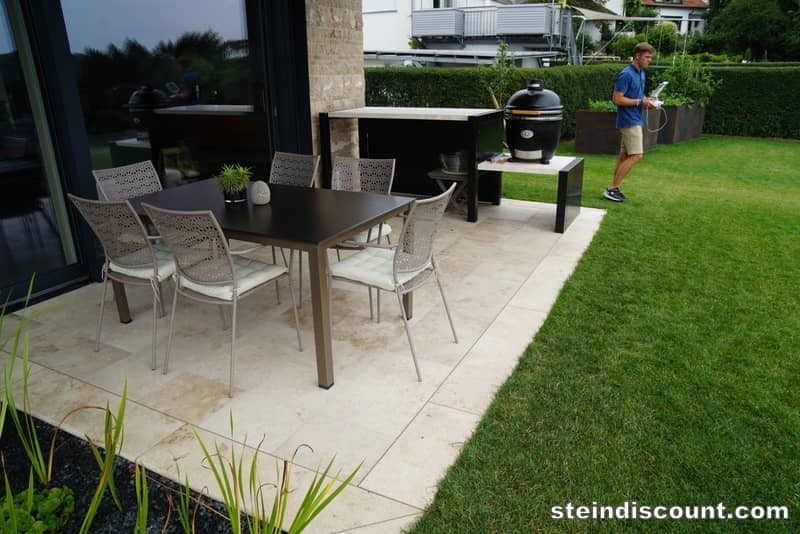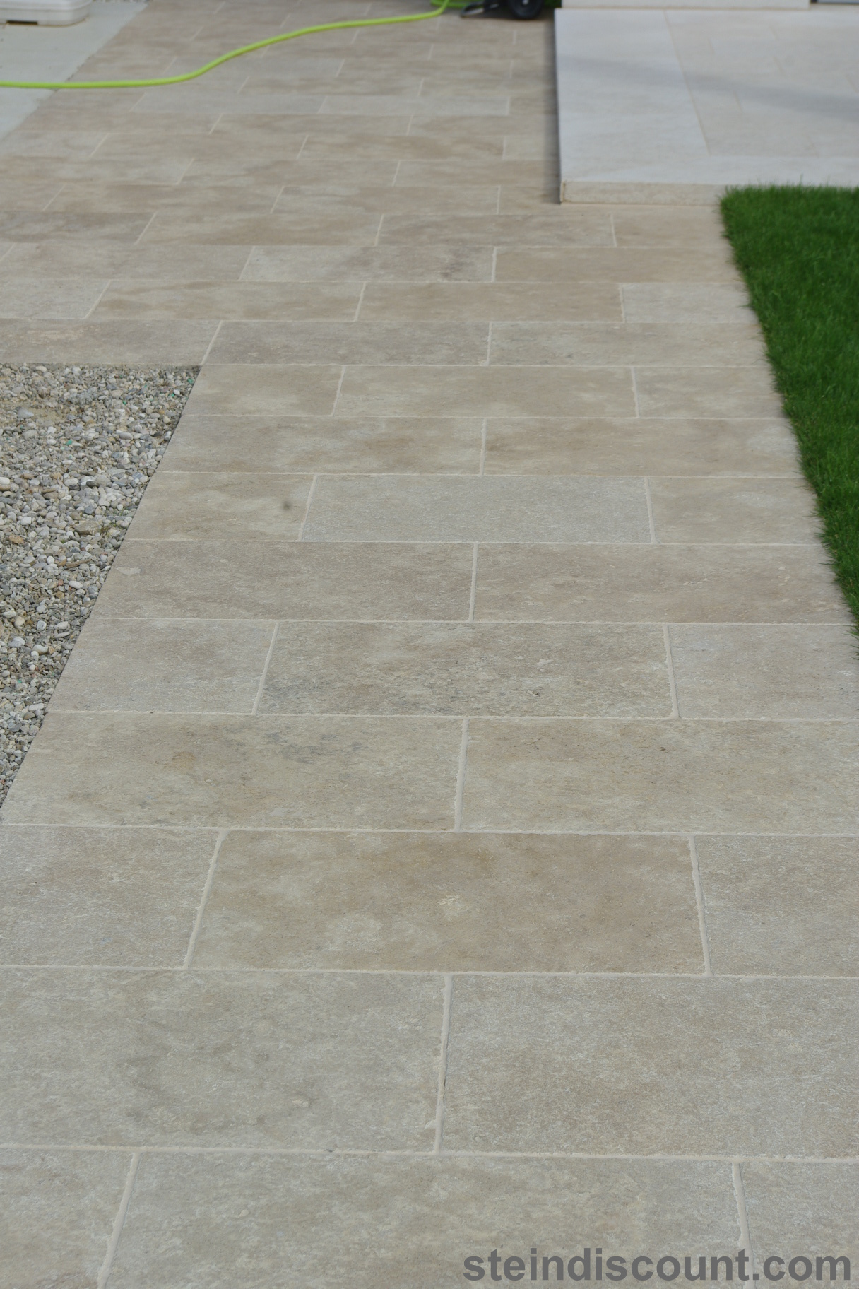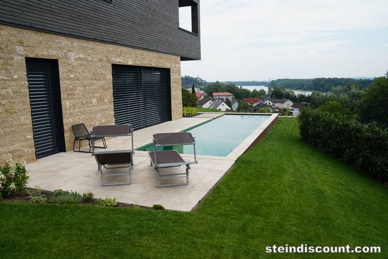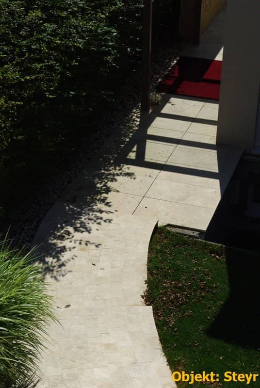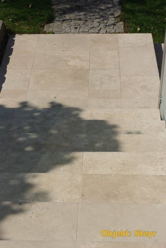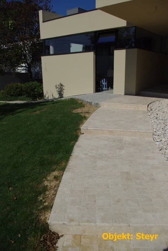 Ein optisch sehr warmer, ansprechender, mediteraner Stein der trotz größter Hitze kühl bleibt und sich beim Barfuß begehen gut anfühlt.
