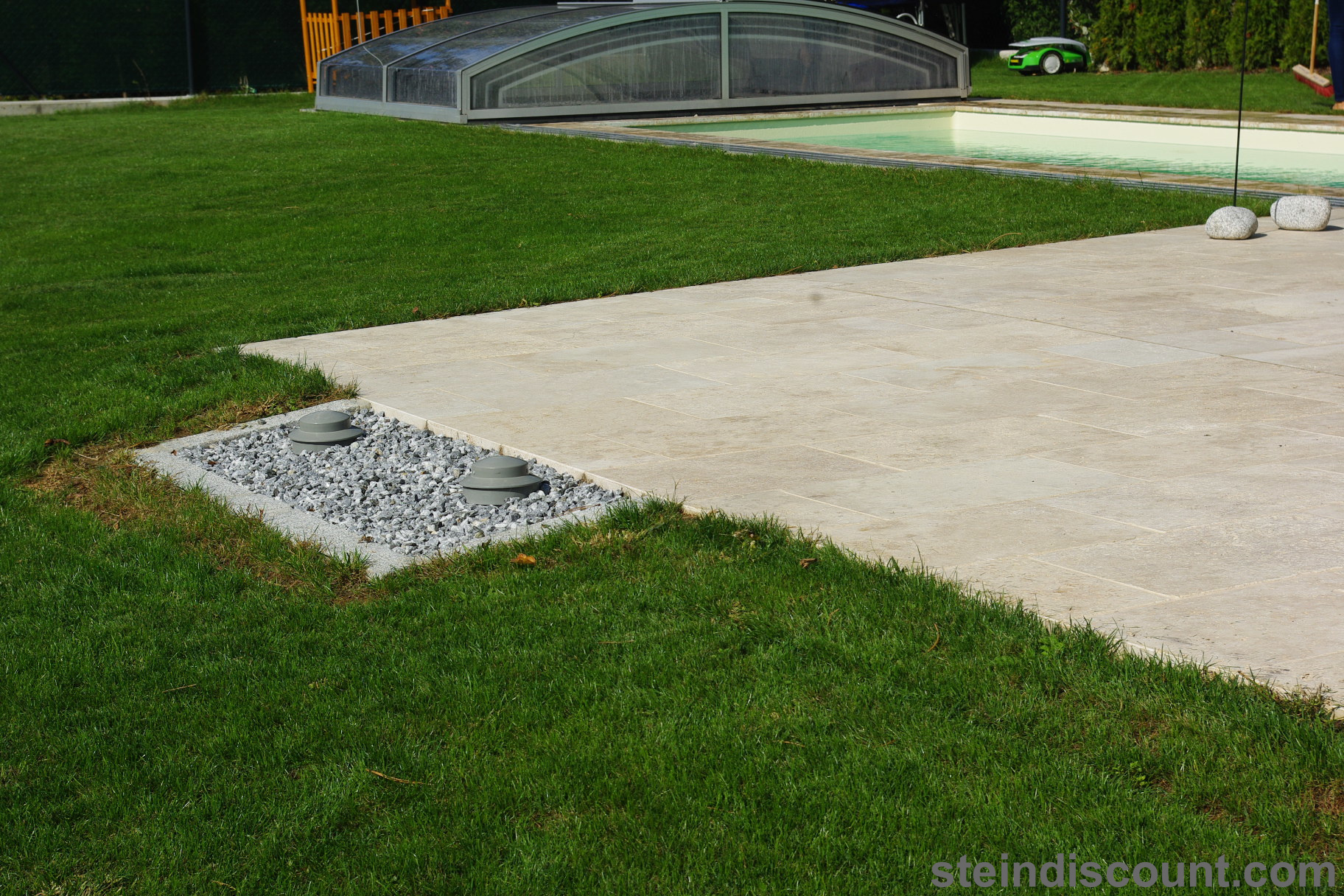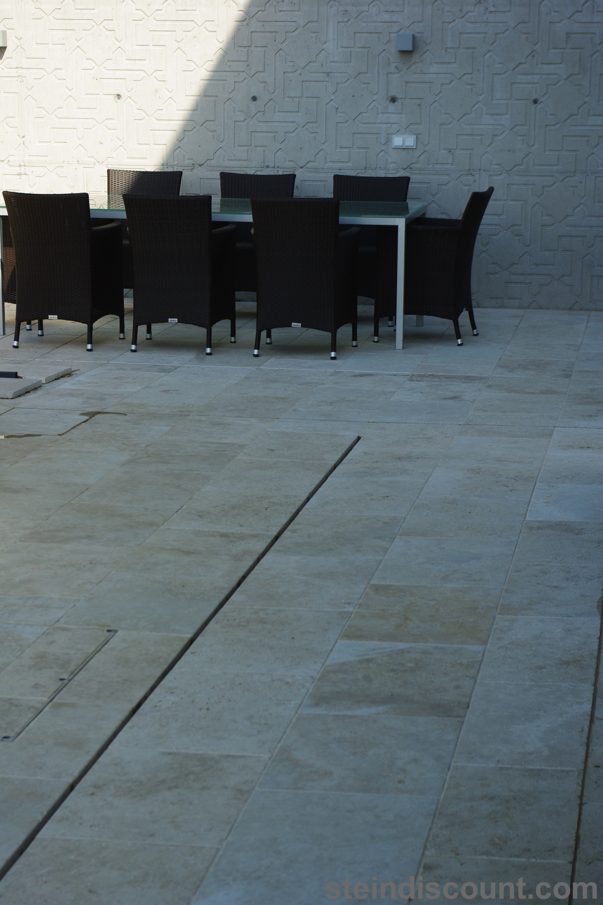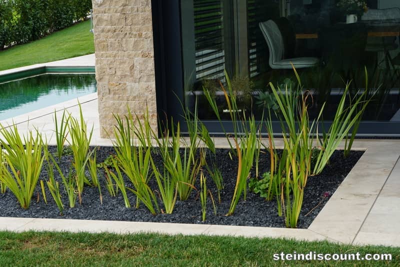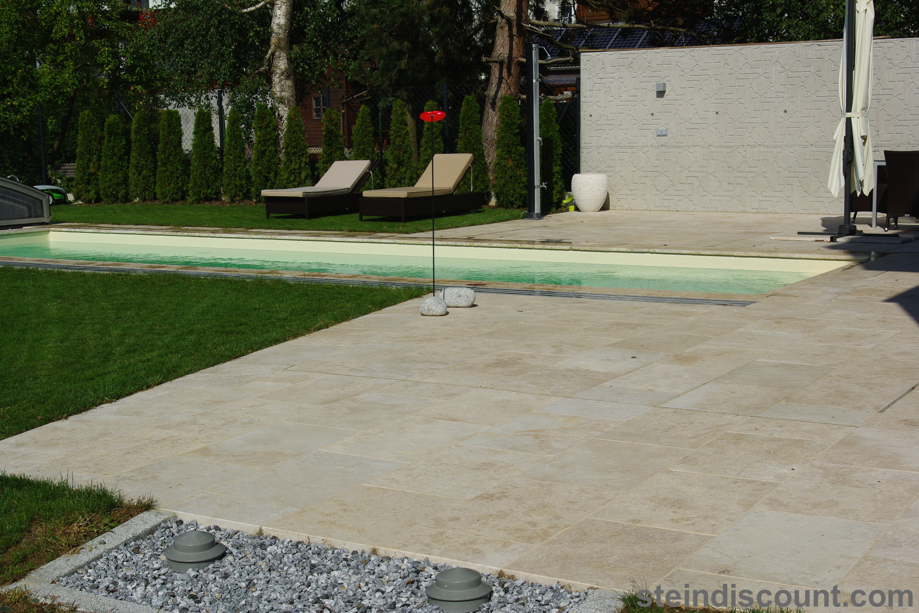 Ein optisch sehr warmer, ansprechender, mediteraner Stein der trotz größter Hitze kühl bleibt und sich beim Barfuß begehen gut anfühlt.