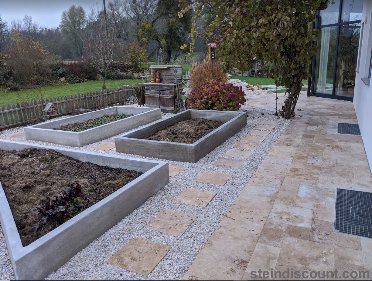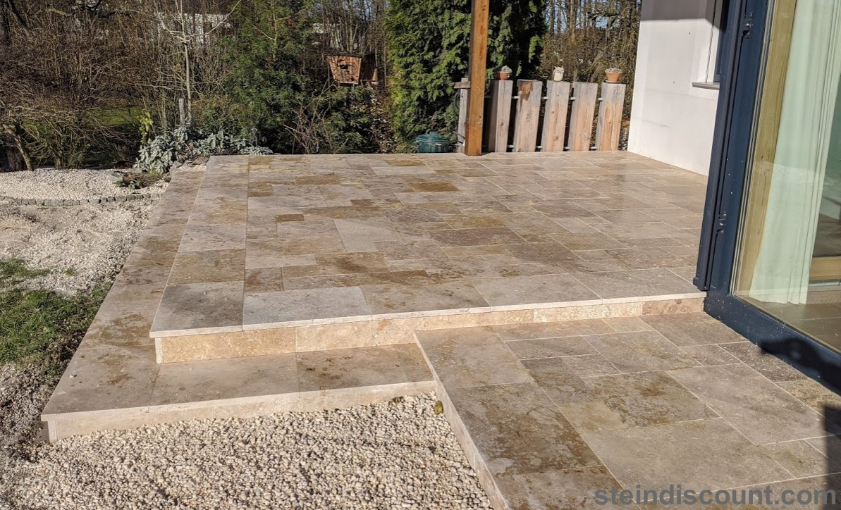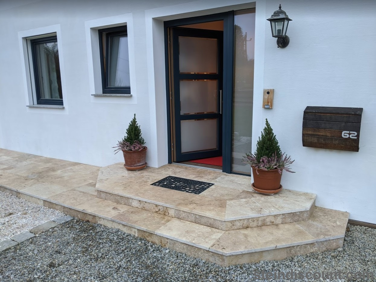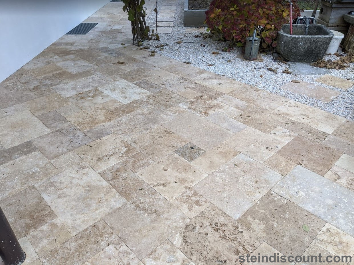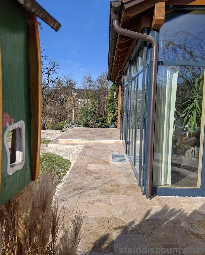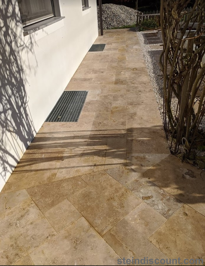 Ein optisch sehr warmer, ansprechender, mediteraner Stein der trotz größter Hitze kühl bleibt und sich beim Barfuß begehen gut anfühlt.