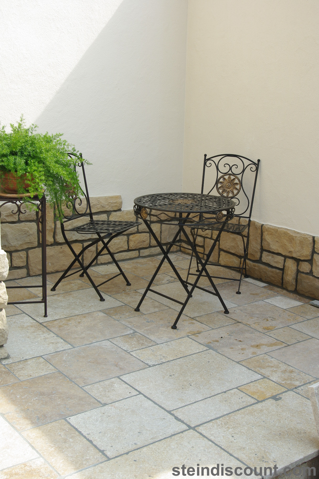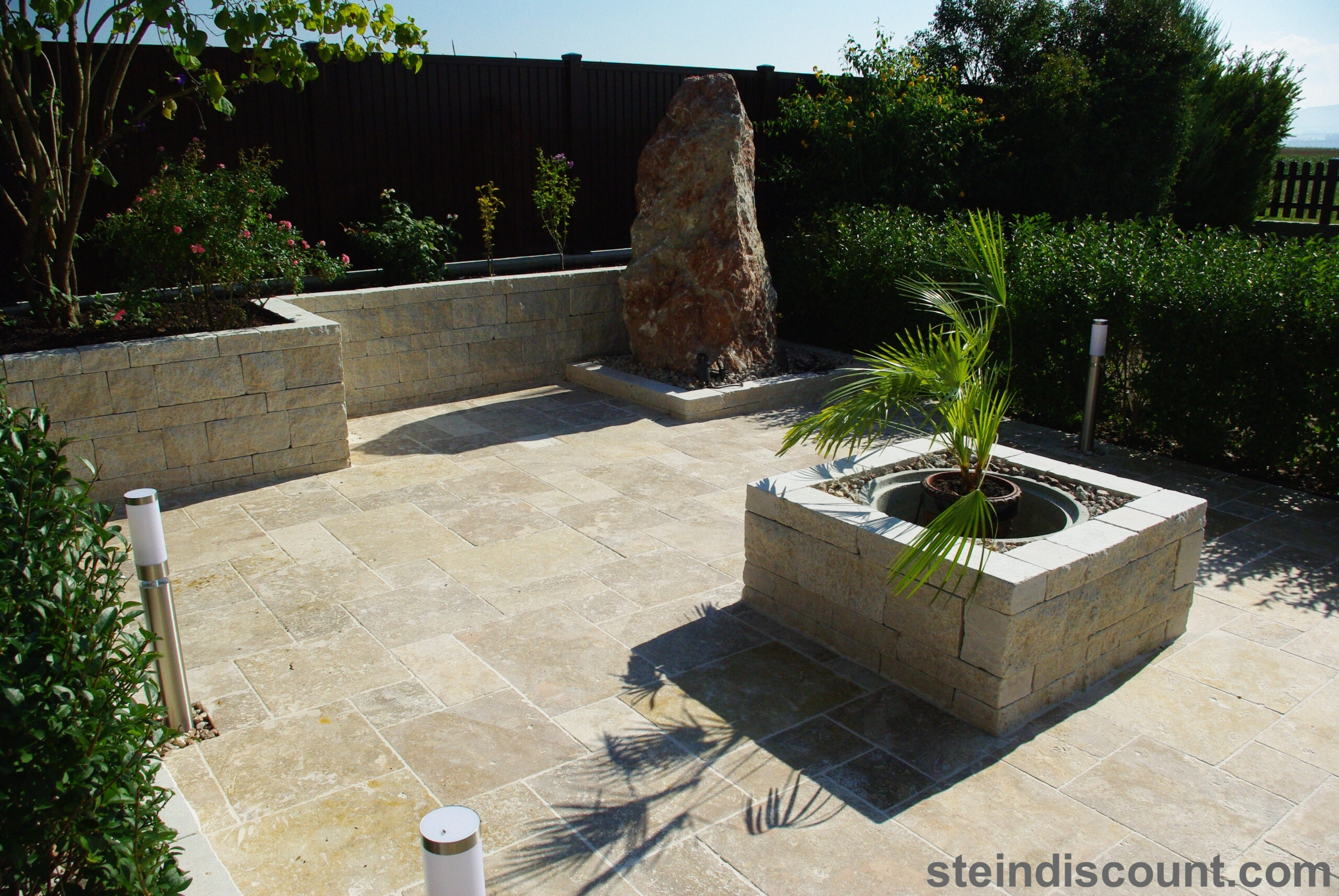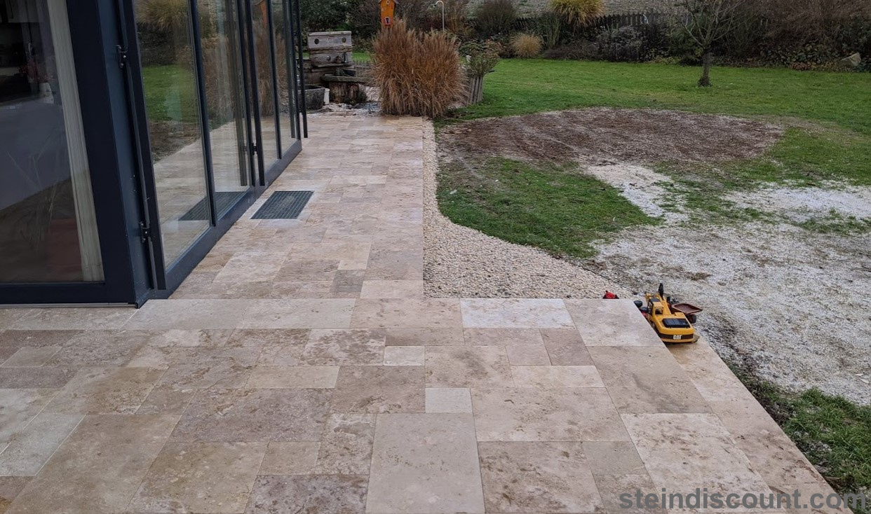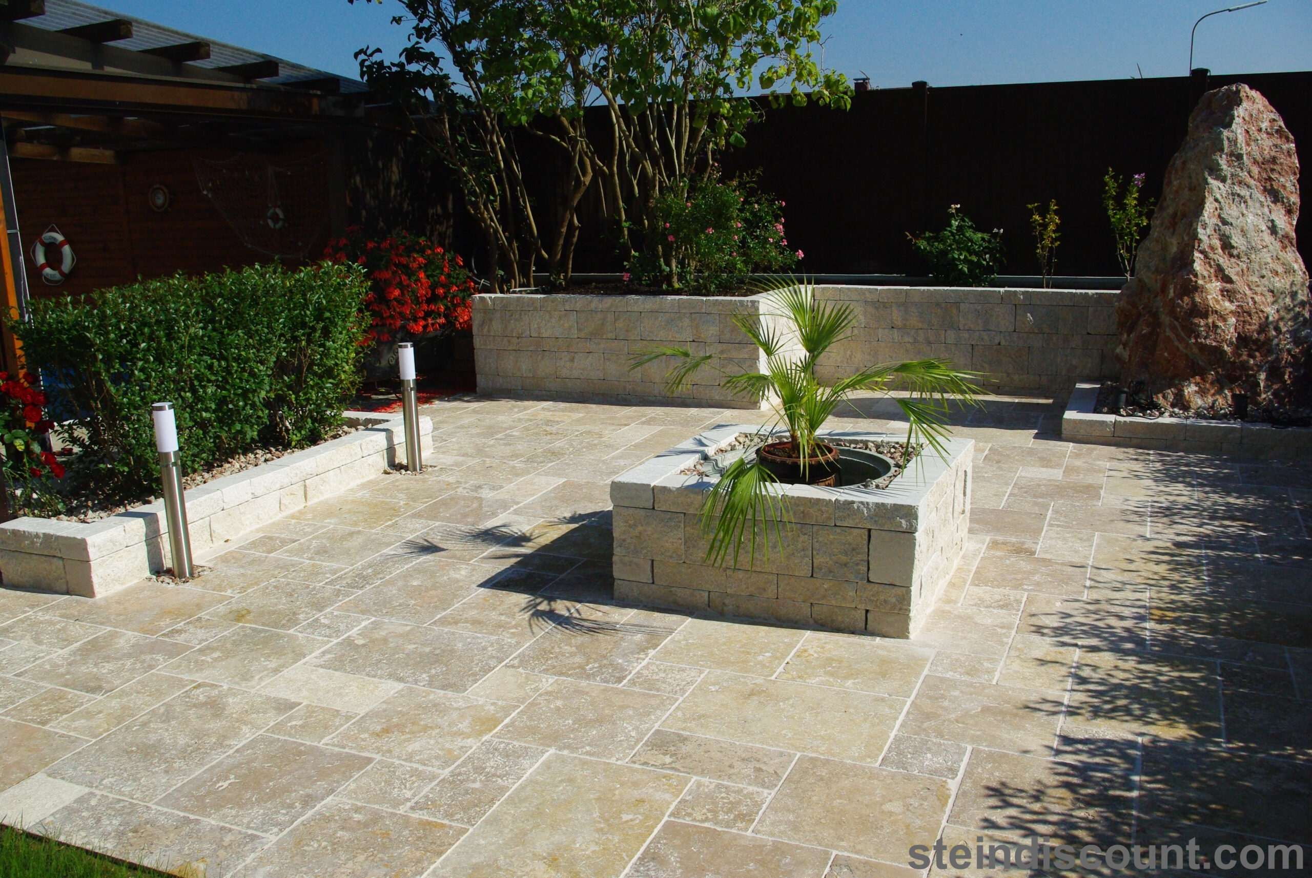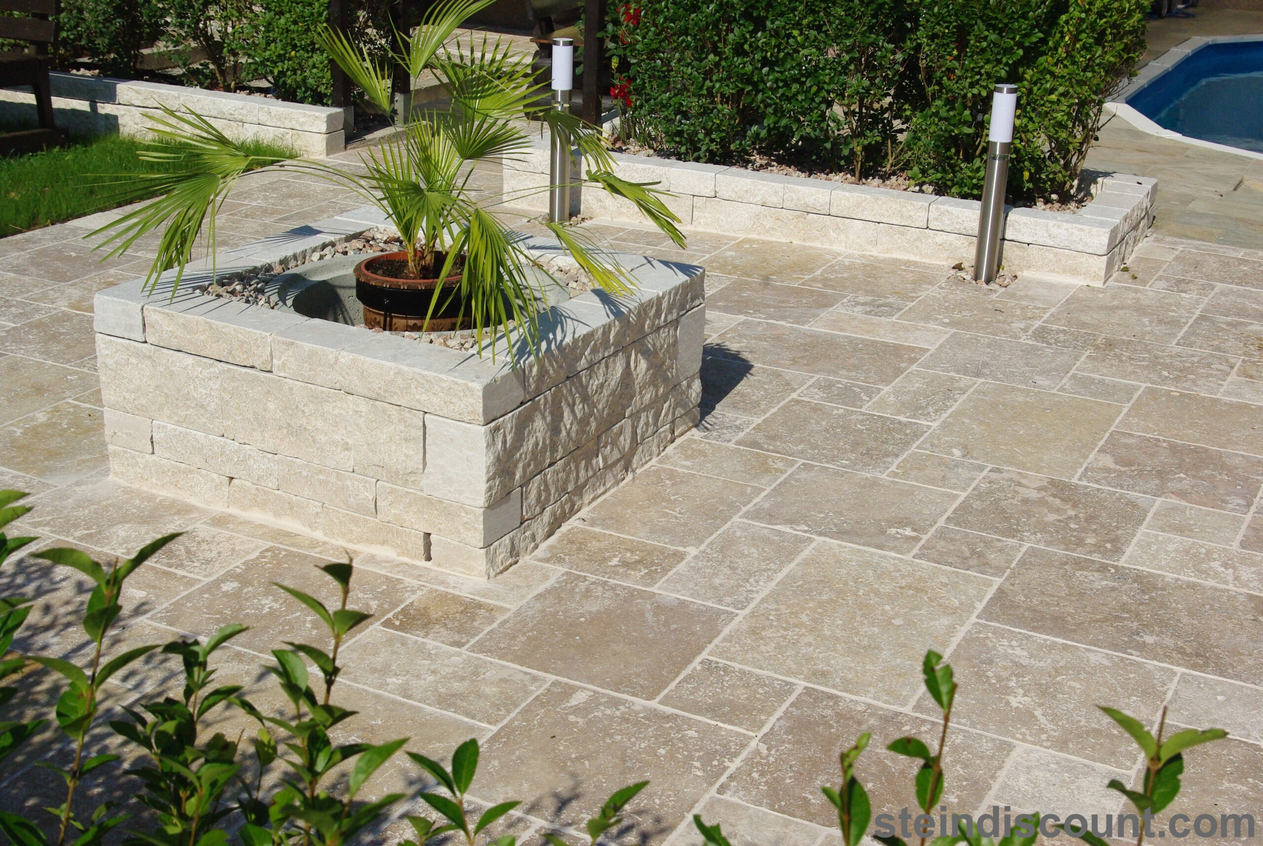 Ein optisch sehr warmer, ansprechender, mediteraner Stein der trotz größter Hitze kühl bleibt und sich beim Barfuß begehen gut anfühlt.