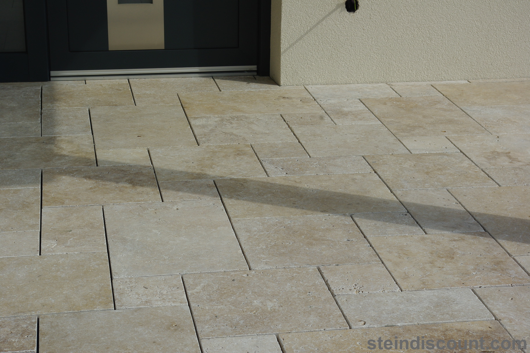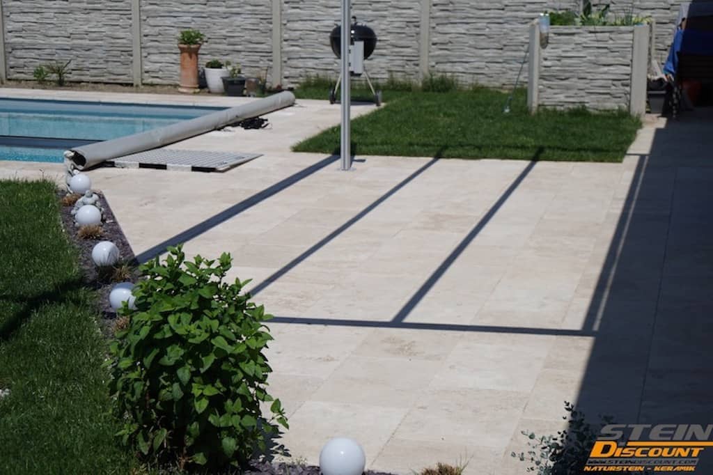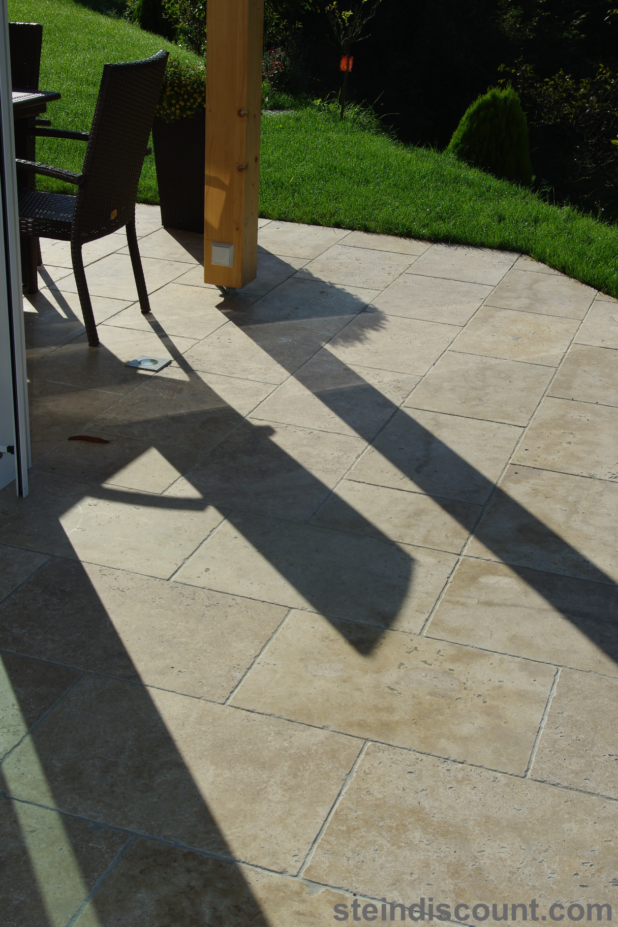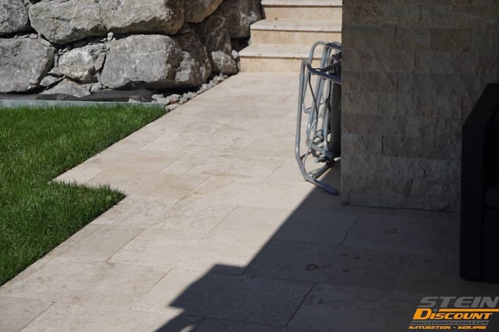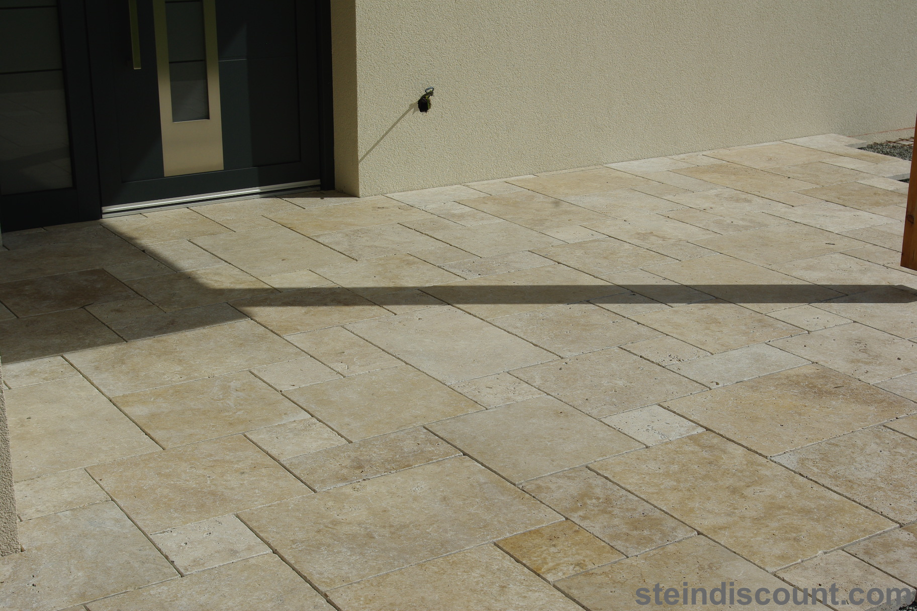 Ein optisch sehr warmer, ansprechender, mediteraner Stein der trotz größter Hitze kühl bleibt und sich beim Barfuß begehen gut anfühlt.