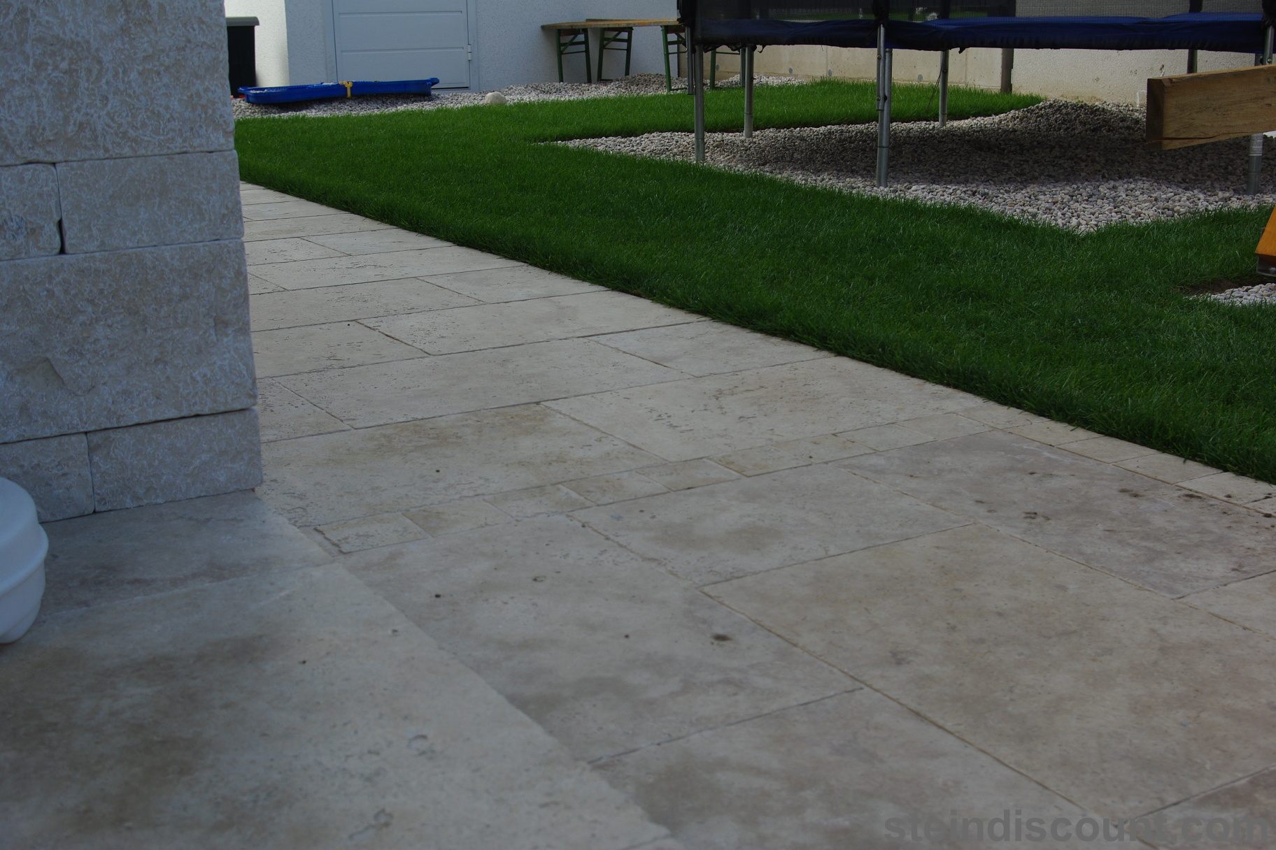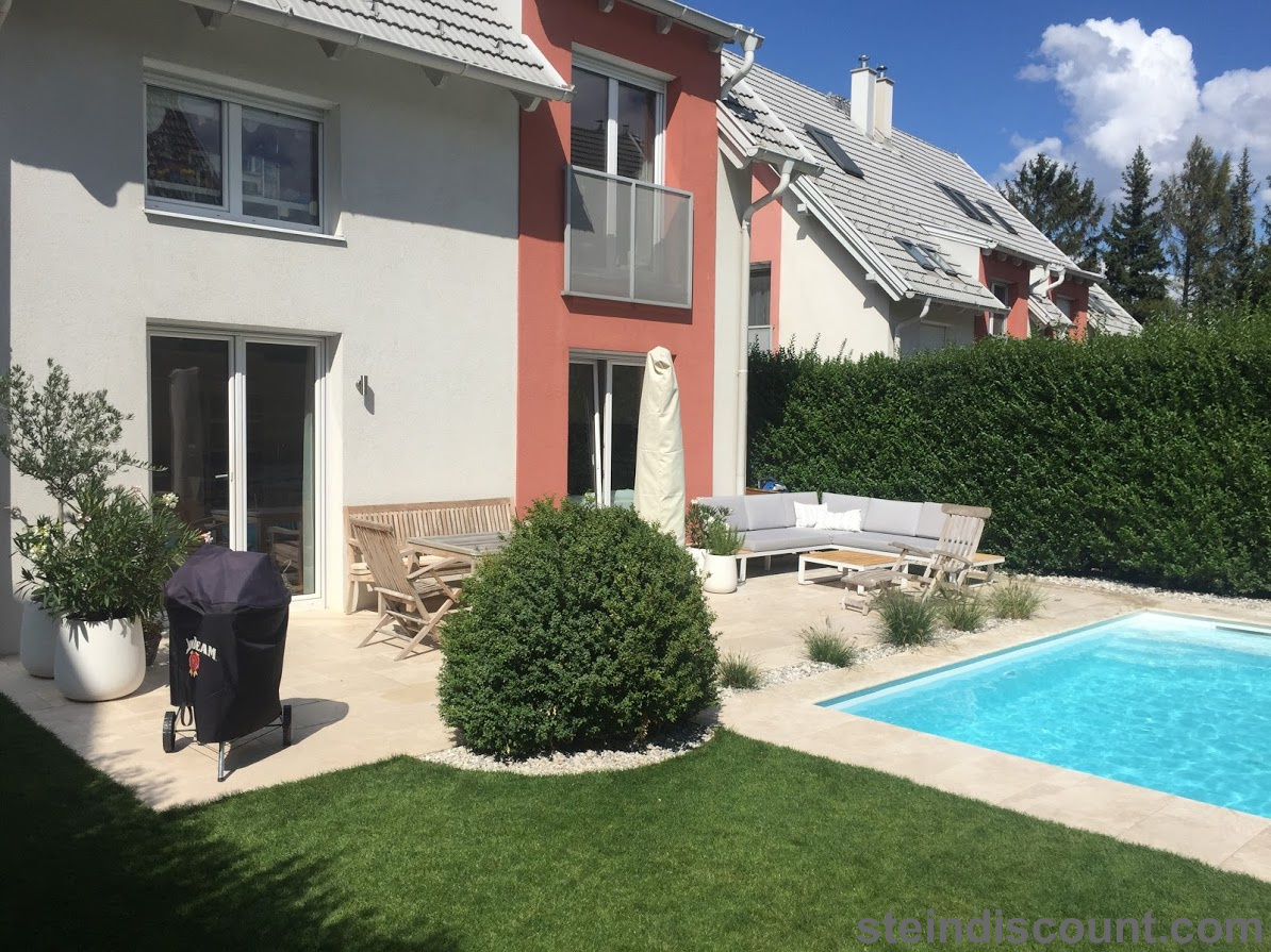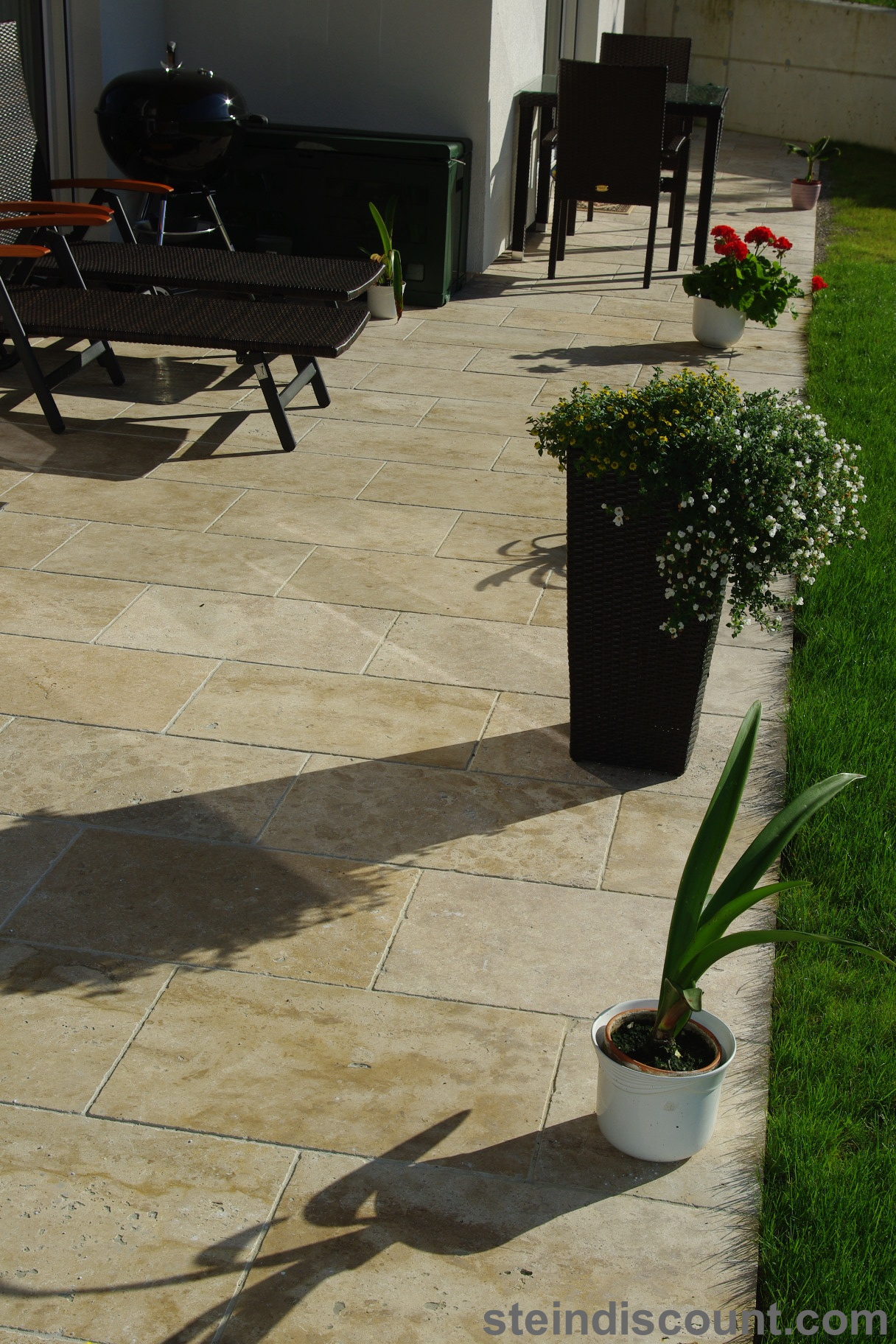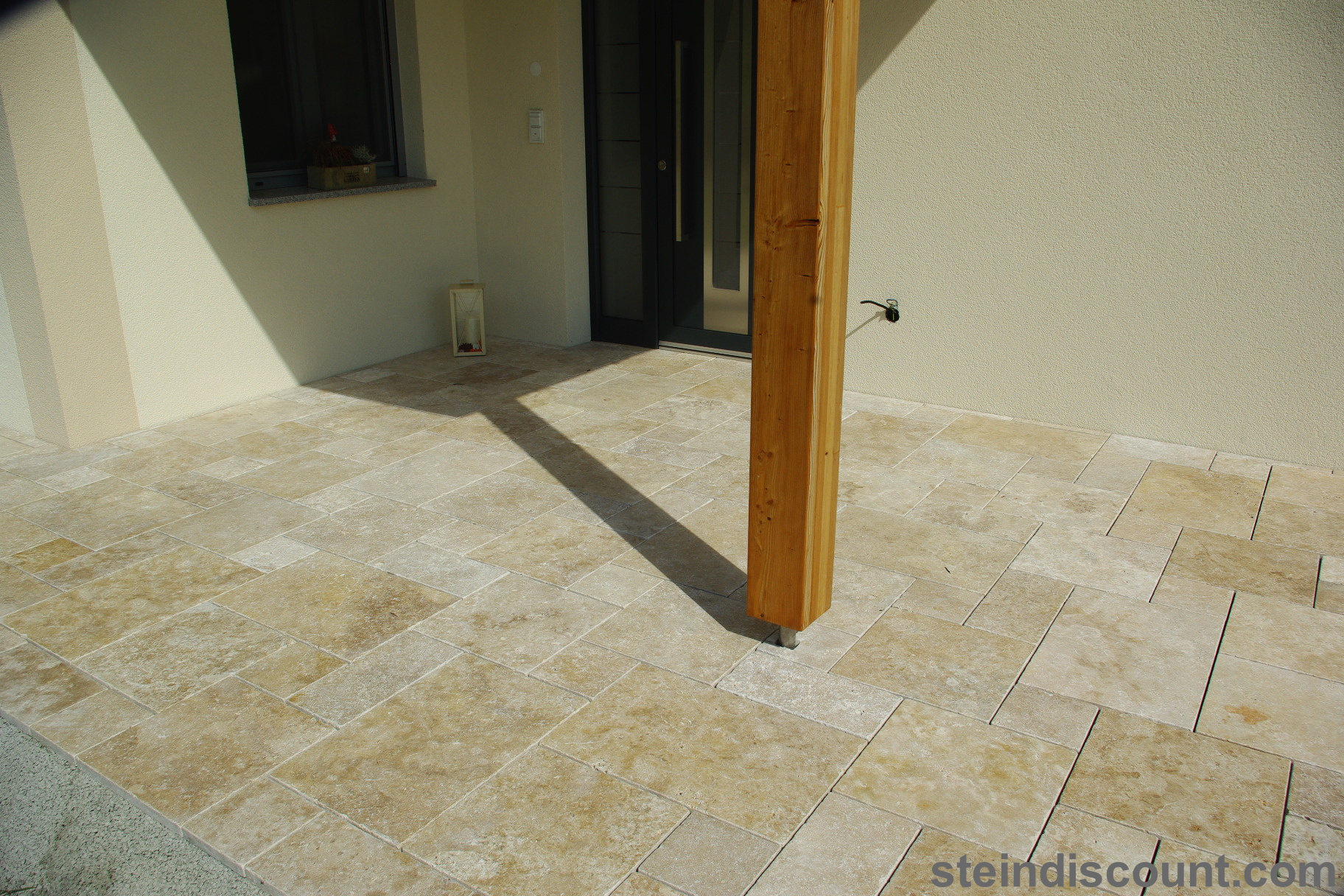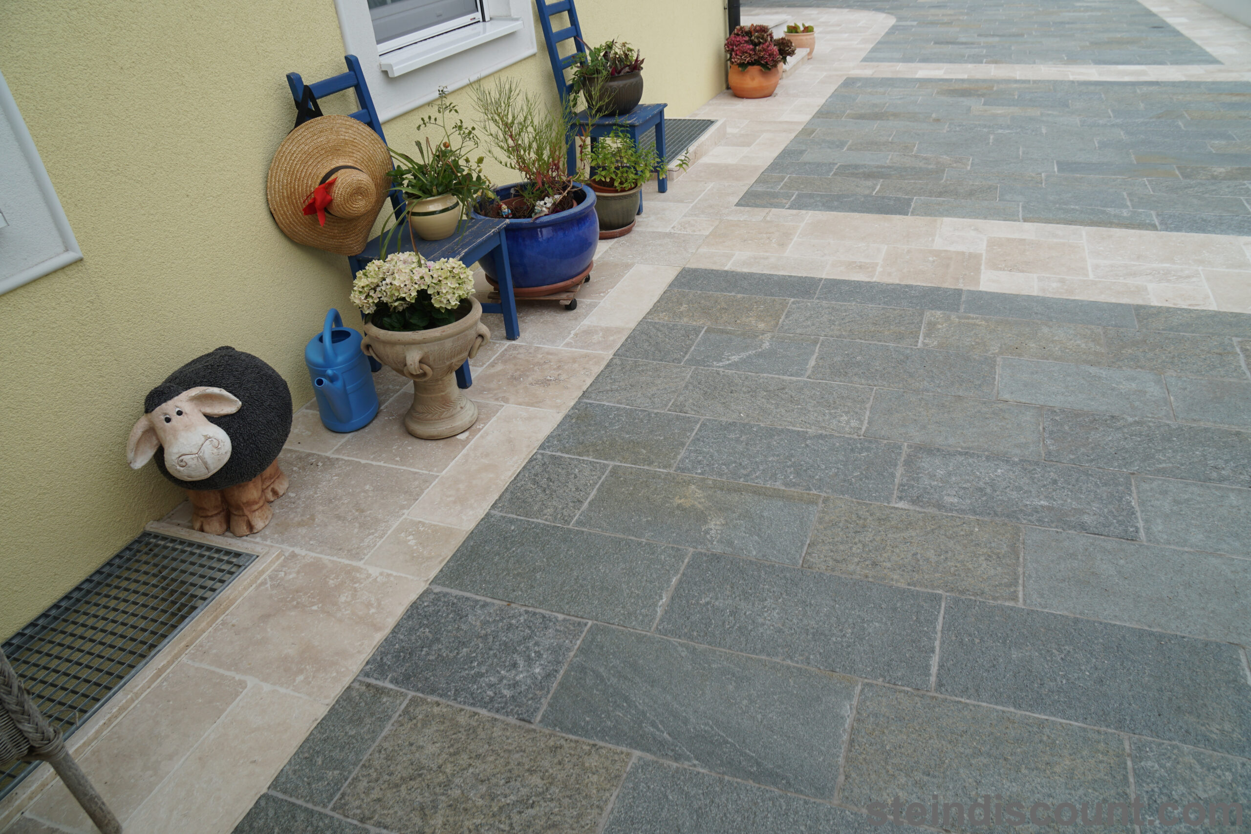 Ein optisch sehr warmer, ansprechender, mediteraner Stein der trotz größter Hitze kühl bleibt und sich beim Barfuß begehen gut anfühlt.