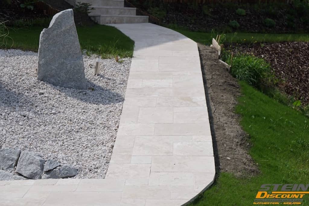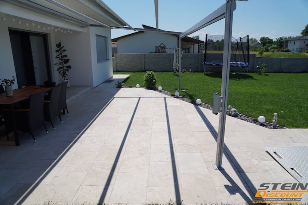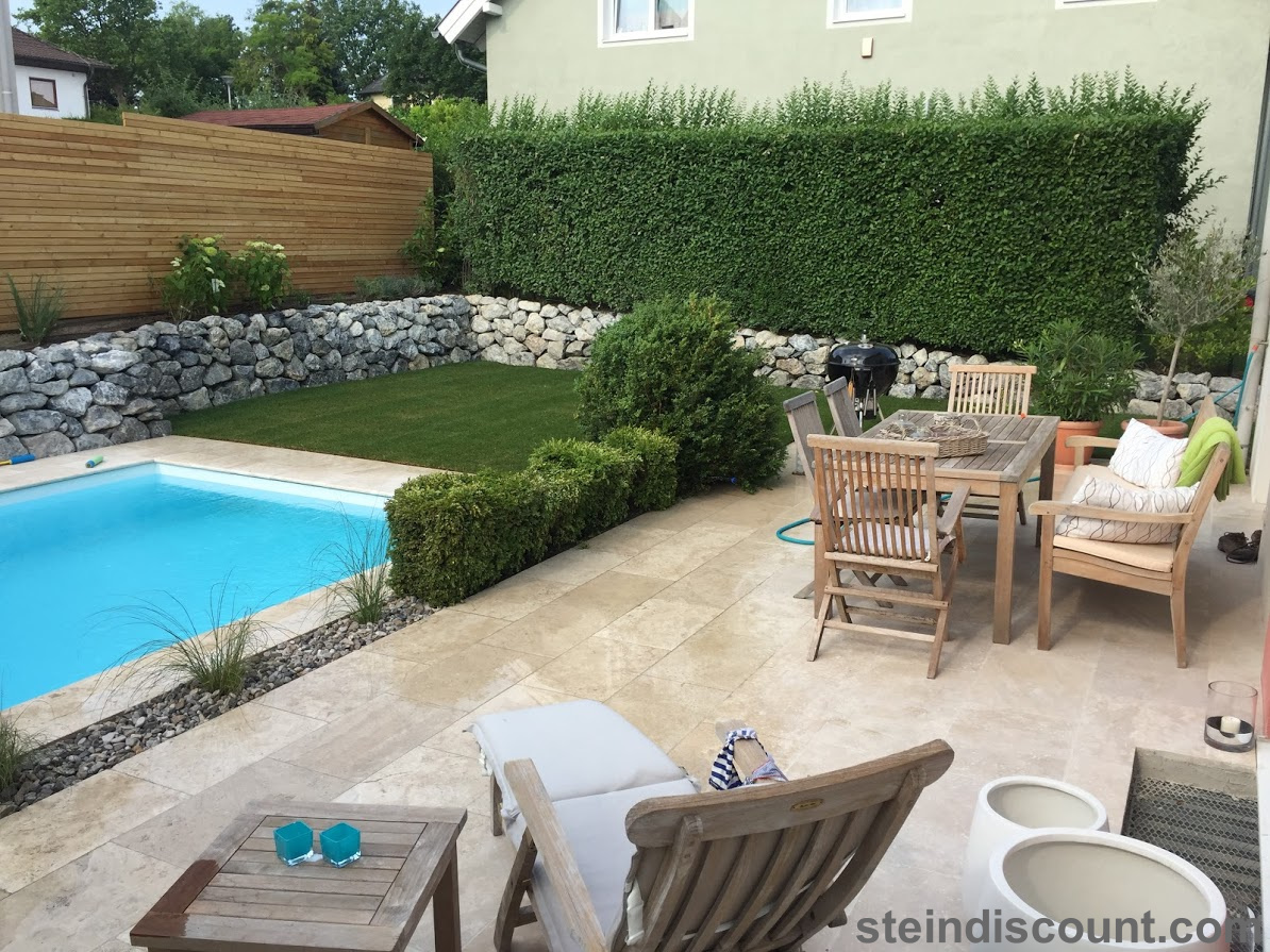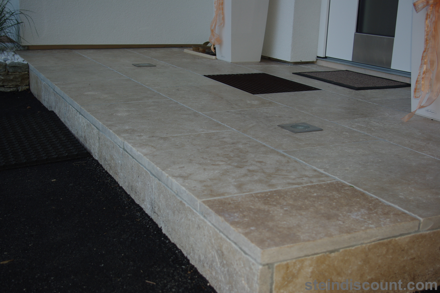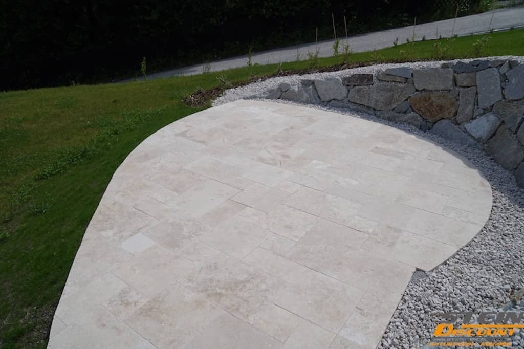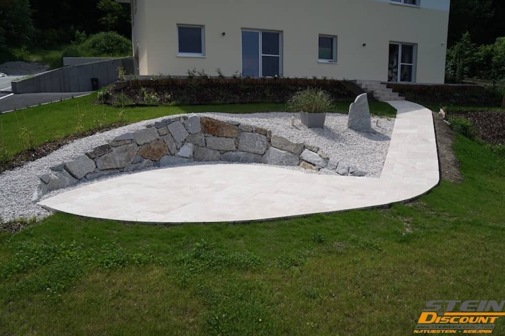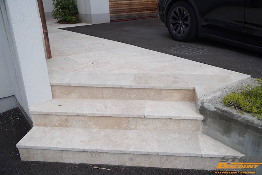 Ein optisch sehr warmer, ansprechender, mediteraner Stein der trotz größter Hitze kühl bleibt und sich beim Barfuß begehen gut anfühlt.