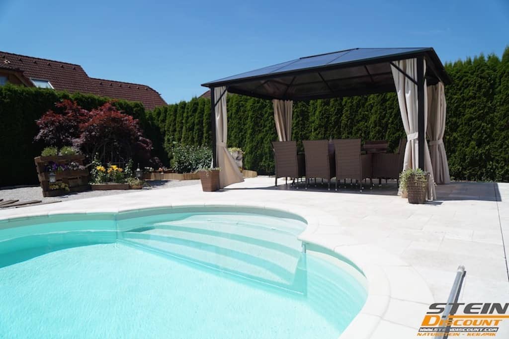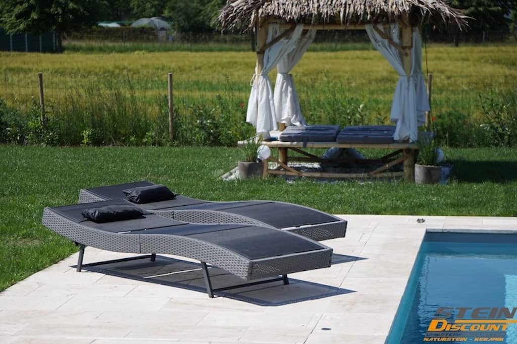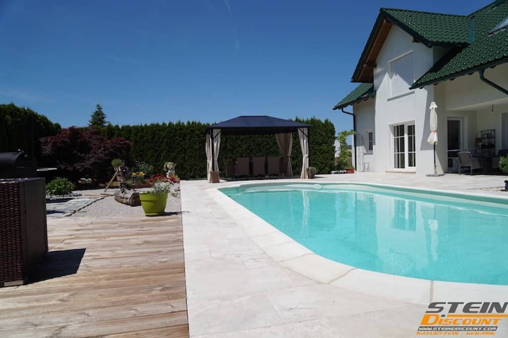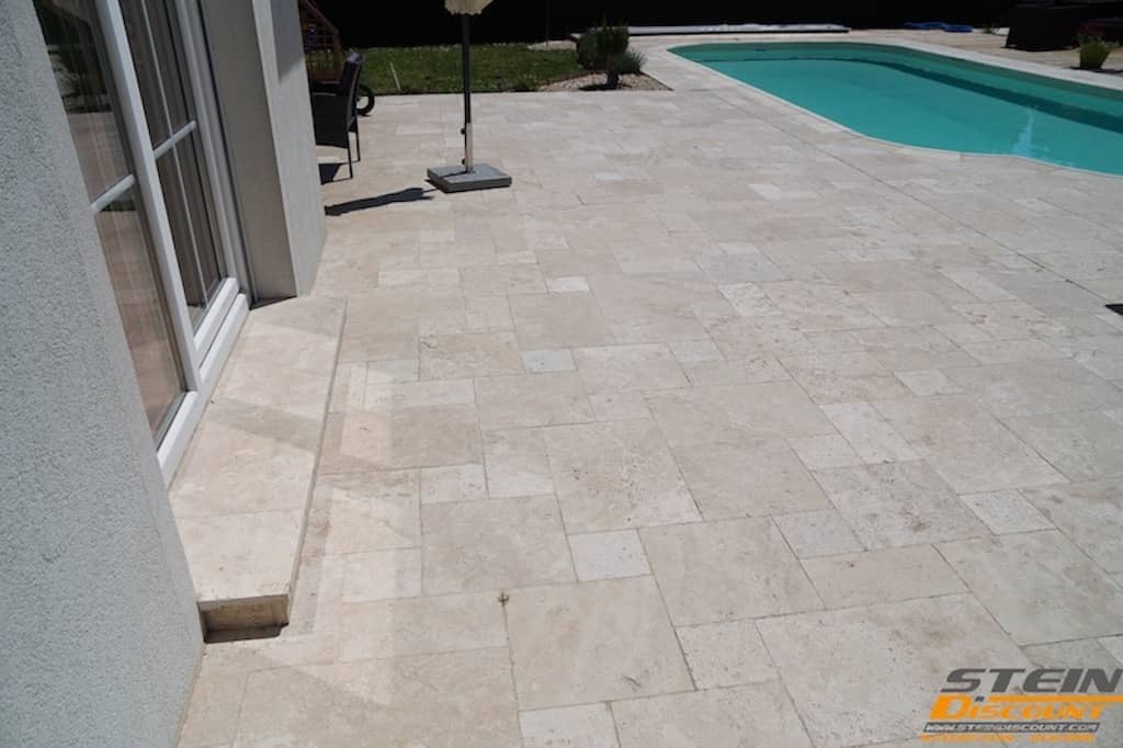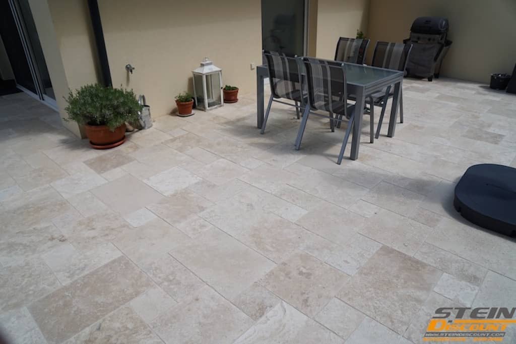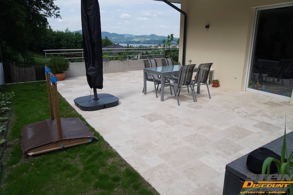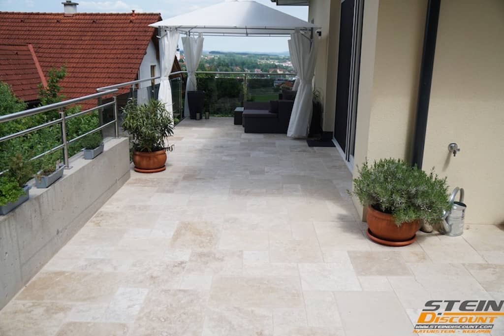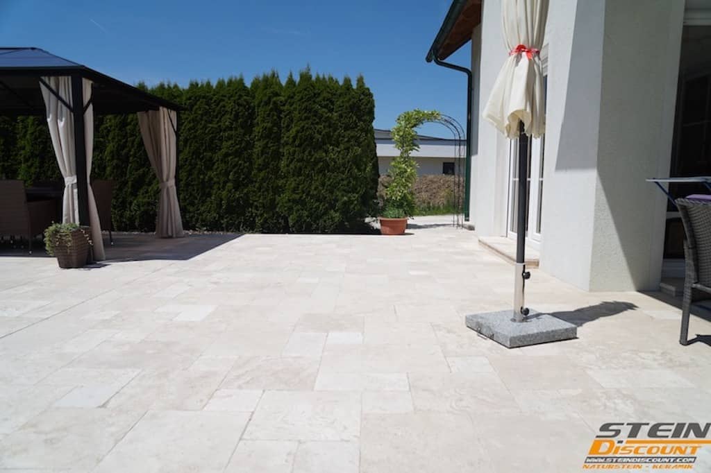 Ein optisch sehr warmer, ansprechender, mediteraner Stein der trotz größter Hitze kühl bleibt und sich beim Barfuß begehen gut anfühlt.