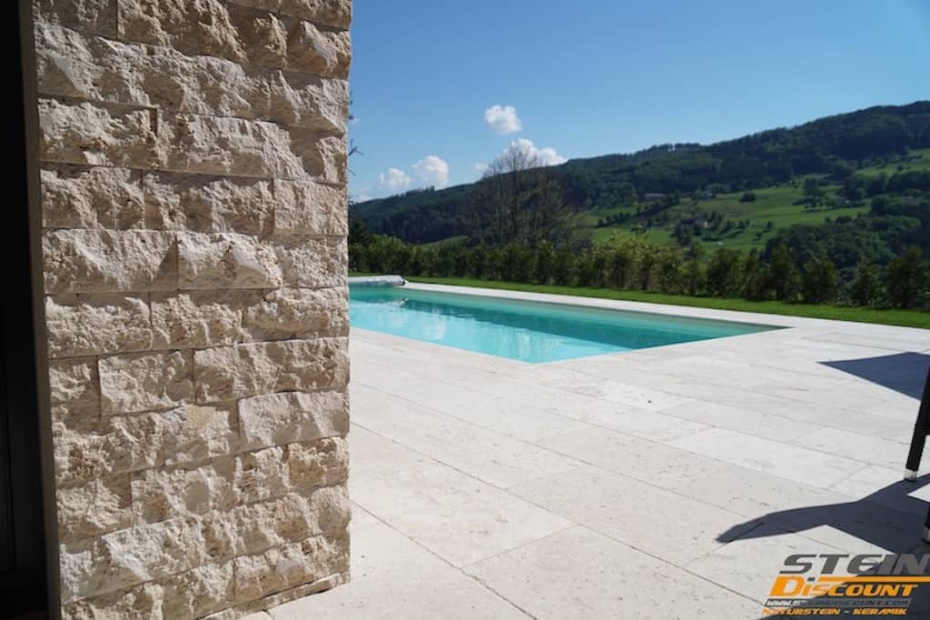 Unseren Travertin importieren wir aus dem Mittelmeerraum. -